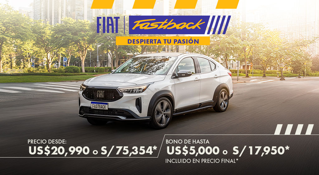 *Promoción válida a nivel nacional en los locales de Divemotor hasta el 31.01.26 o hasta agotar stock. Stock mínimo: 03 unidades. Bono de US$5,000 se encuentra aplicado al precio de US$ 20,990 para el modelo Fastback versión AUDACE 1.0T AT. SKU 1009025– Año Modelo 2025. Imágenes referenciales. Equipamiento puede variar según versión y/o SKU. Tipo de cambio según caja Diveimport S/3.60 al 01.01.2026. Promoción directa con Divemotor.